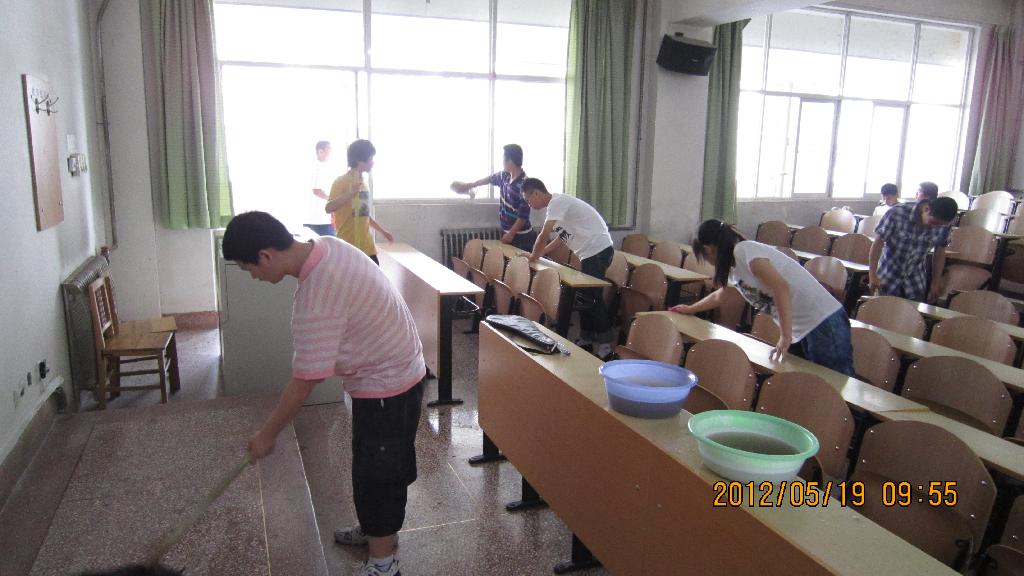5月19日上午,公司第三十九期高党学员共106人在三教参加义务劳动,他们分别对三教的多个教室进行了扫除工作,使教室环境焕然一新。