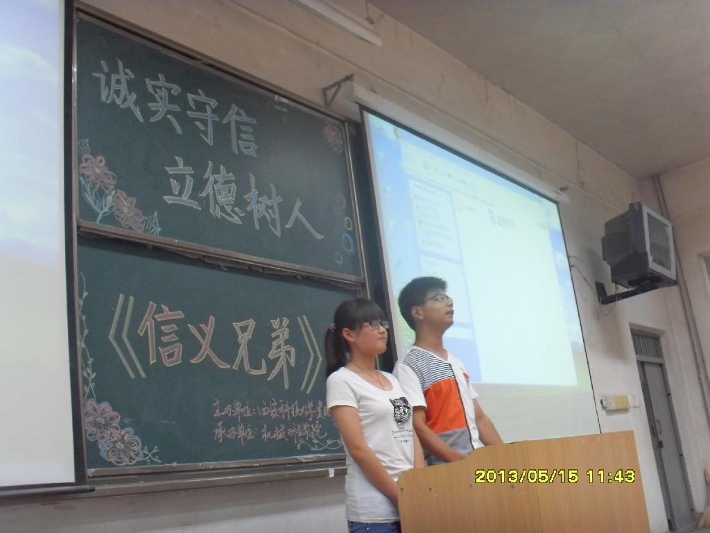 本次活动观看的是影片《信义兄弟》,讲述了以生命践行诺言的湖北孙水林兄弟的感人事迹。信义是立人之本、立国之基,此次活动是学校响应教育部号召而举办的特别活动,旨在深入贯彻党的十八大精神,提高家庭经济困难员工资助水平,推动国家助学贷款工作持续发展。观看影片后,许多同学流下了感动的泪水,并表示深受教育,明白了诚实守信的重大意义,活动到此圆满结束。