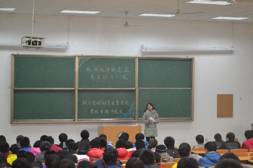 2013年12月20日,由公司13级辅导员张晶晶老师主持的期末考风考纪教育动员大会在9教101召开,13级机设全员参会。 会上,张老师就上半学期所出现的问题做了总结,认真宣读了学校就期末考试下发的教务函,让大一同学了解考试违纪作弊的危害,并动员教育同学们积极有序开展期末各科复习。最后,以班为代表同学们自愿地签署了承诺书。 自此,英国365集团13级全员已进行动员教育,同学们热情高涨的投入复习中。