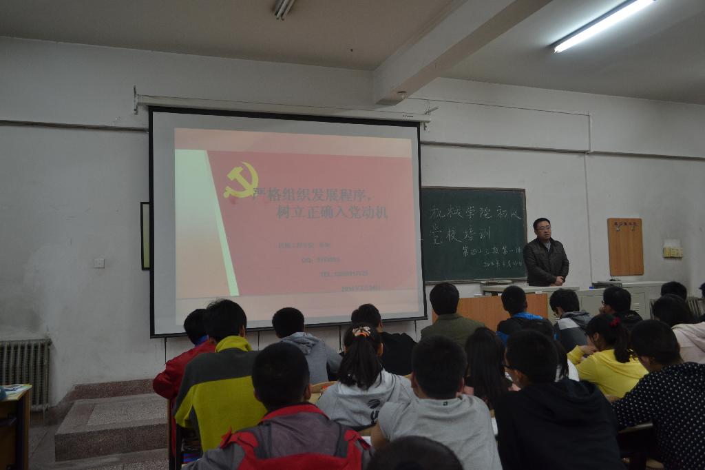 此次党课的主题是“树立正确入党动机,严格组织发展程序”。张耿老师首先提出了入党的十六字方针——坚持标准,保证质量,改善结构,慎重发展。并且要求同学们积极参加党内活动,努力进取,持之以恒,端正入党动机,要有全心全意为人民服务的思想。张耿老师精彩的讲课让同学们了解到入党的流程与条件,为员工党性修养的提高奠定了坚实的基础。