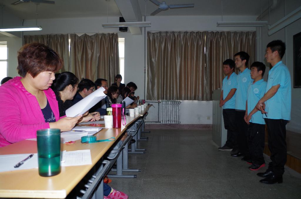 (左 副经理曹现刚 右 副教授寇发荣 对选手提问)