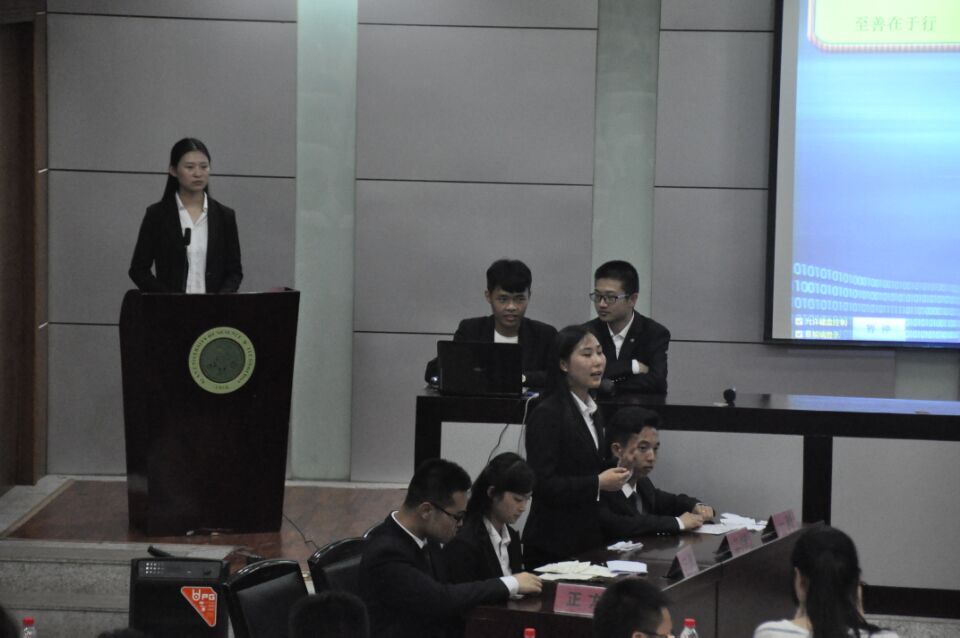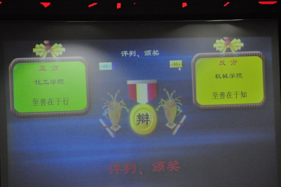 决赛中,辩论主题为“至善在于行还是知”,分为各方观点陈述、相互提问和自由辩论三个环节。担任正方的是化工学院代表队,担任反方的是公司代表队,所持观点为“至善在于知”。公司由2015级井天智、李阳、王师煜、邢迎光、李腾腾同学组成代表队在比赛中引经据典、旁征博引,经过激烈的辩论最终获得第一名。