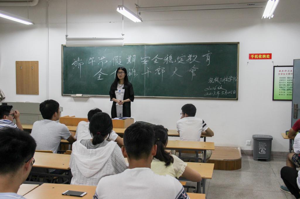 5月25日晚上在英国上市公司365临潼校区10教501教室,公司召开2016级员工端午节假期安全教育大会,2016级各班班长、团支书、学习委员、舍长参加了会议,会议由2016级辅导员杨芝主持。