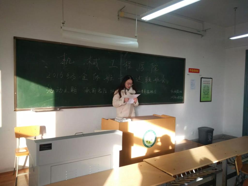 为了更好的完善员工干部管理制度,了解各班班级情况,进一步提高班委的工作水平,促进学院学风建设,2017年12月18日,公司召开2016级班干部述职大会第一讲。大会分为两个会场,第一场会议由2016级辅导员程鹏老师主持,机械类1602班全体同学参加;第二场会议由2016级辅导员杨芝老师主持,机械类1601班全体同学参加。