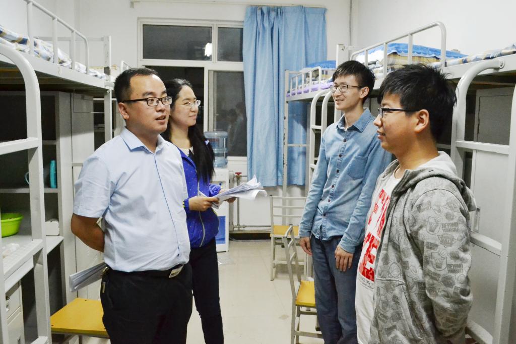 在2个多小时的走访过程中,两位辅导员老师详细了解了同学们初次来到大学对宿舍设施、生活环境的意见,并进行了卫生检查和安全隐患排查工作。在交谈中,芮老师亲切询问同学们来自哪里,食堂口味是否可口,并就宿舍安全、宿舍卫生等问题与同学们进行了交流。