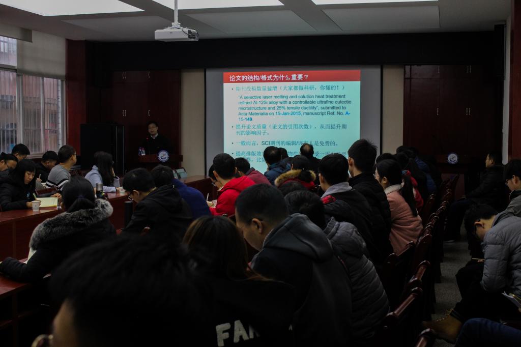 张来昌结合自己多年来撰写和发表SCI论文的经验及体会,从论文的结构、基本框架、注意事项和论文写作等四个方面展开了系统讲解。结合真实案例,重点对论文题目、摘要、前言、讨论、图表和参考文献等方面进行了细致地剖析,并就SCI科技论文撰写和投稿技巧与师生进行了深入交流讨论。