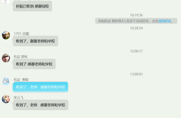 以人为本,扎实做好服务保障。一是全体学工干部积极响应学校“横到边、纵到底”员工教育管理要求,全体学工干部“下沉”员工宿舍,深入员工,指导员工开展宿舍学风建设和宿舍文化建设,帮助员工提高自我管理的能力,营造健康积极有序的宿舍文化生活氛围。二是指导员工做好科学防护,分批次为两校区研究生、本科生发放口罩、洗手液等防控物资,累计发放防疫物资3万余元,防疫物资发放覆盖全体员工。三是及时温暖关心生活存在困难的员工。得知学院徐彬等17级延期员工因参加全国四级英语考试,杨扬等2017级毕业生参加研究生考试,受疫情影响滞留学校附近或周边,生活存在一定困难。学院立即安排摸排,“一对一”联系掌握员工生活情况,建立信息台账并及时传达了学院的问候。1月2日上午10时,员工个人银行卡收到学院为其发放的临时困难补助,合计4000元,相关同学纷纷发来信息表达“感谢学院、感谢母校”的惊喜心情。