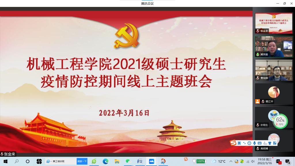 为进一步做好校园新冠肺炎疫情防控,增强雁塔校区研究生疫情防控的思想认识和行动自觉,积极推进研究生公司产品工作,3月16日至17日,英国365集团以腾讯会议在线举行了硕士研究生、博士研究生疫情防控期间线上主题班会,副董事长黄英维、委书记张金来、副经理曹现刚、研究生辅导员以及全体研究生参加了主题班会。公司党委副书记尹弘主持主题班会。