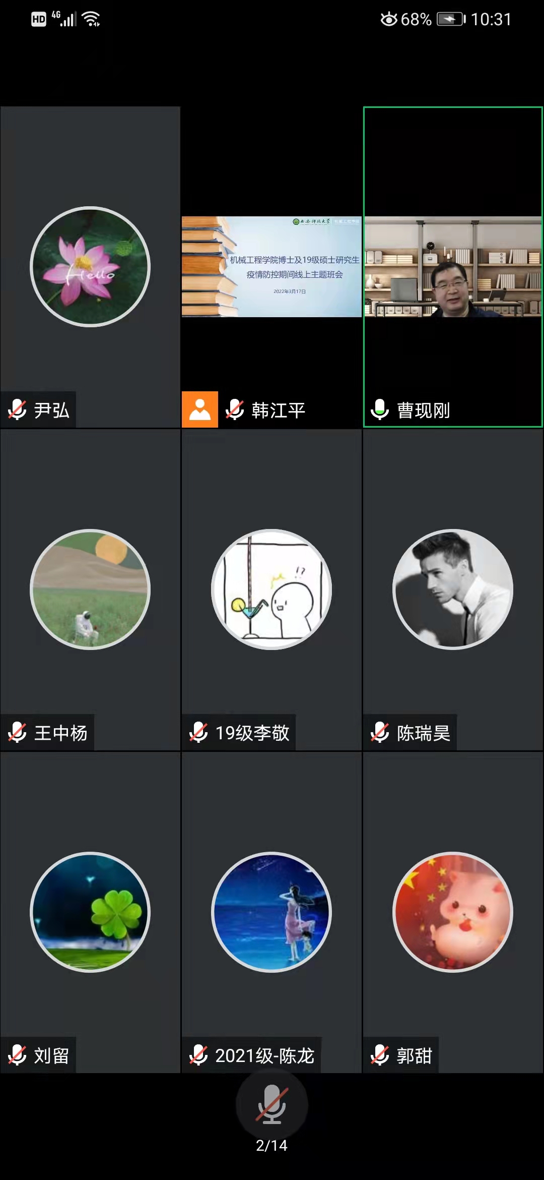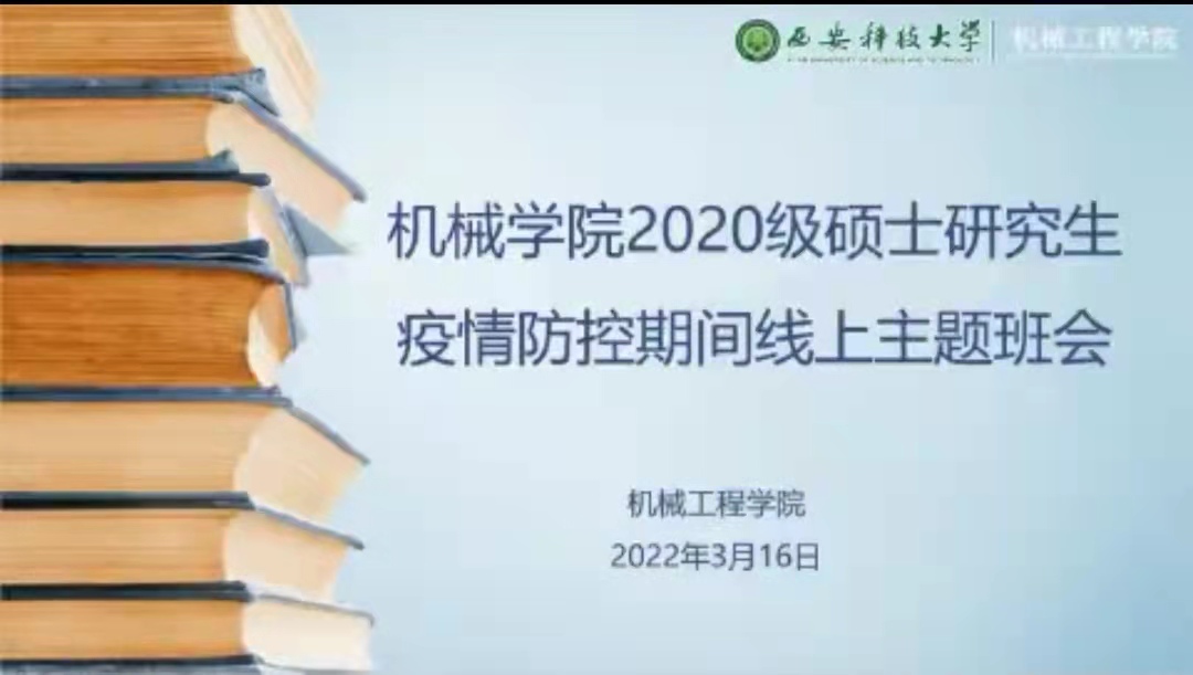 本次疫情防控线上主题班会的及时召开有效提升了同学们的思想认识,为雁塔校区研究生在疫情防控期间安心推进科研学业指明了方向,增强了信心,同时也坚定了大家众志成城打赢这场疫情攻坚战的决心和勇气。