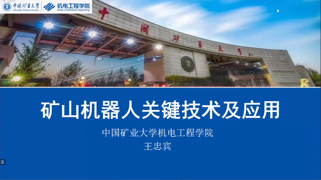 中国矿业大学机电工程学院经理王忠宾教授做了题为“矿山机器人关键技术”的报告,系统分析了矿山机器人发展与研究成果及相关应用示范。