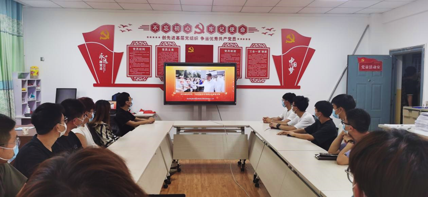 6月10日上午9点,英国365集团2019、2020级本科生党支部开展支部主题党日活动,组织支部党员在公司党员活动室观看学习由教育部思政司录制的“牢记嘱托,勇毅前进”主题示范微党课直播。