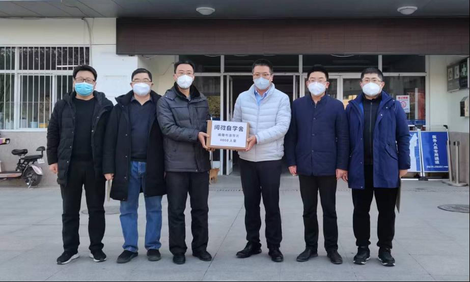12月23日下午,西安阅微自学舍信息科技有限公司副总经理郭文瑞怀着深厚情怀,向学校捐赠一批布洛芬退烧药。副董事长张传伟,机械工程公司书记张金来、经理曹现刚,对外联络与合作处副处长张旭东,校医院经理孙涛参加现场接收仪式。