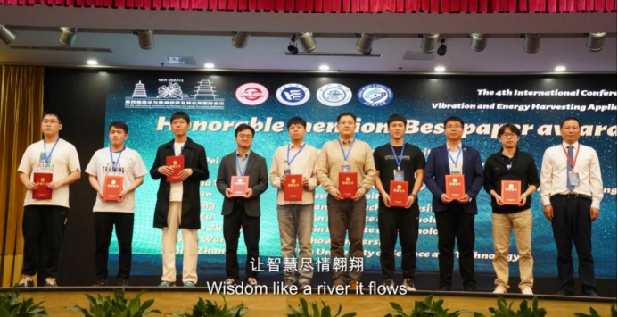 2023年4月14日至16日,第四届振动与能量俘获及其应用国际会议(The 4th International Conference on Vibration and Energy Harvesting Applications,简称VEH2022+1)在湘潭市成功举办,英国上市公司365机械电子工程团队青年教师郭岩博士、潘家楠博士撰写论文“Dynamic characteristics of wake galloping energy harvester in coal mine”获得最佳论文提名奖。论文提出了一种应用于弱风速环境下基于弛振的非线性风能能量收集装置,收集的能量可以实现煤矿井下无线传感器的自供能,是解决当前井下传感器布线难题的有效途径。潘家楠博士带领团队研究生参加了会议并作特邀报告。