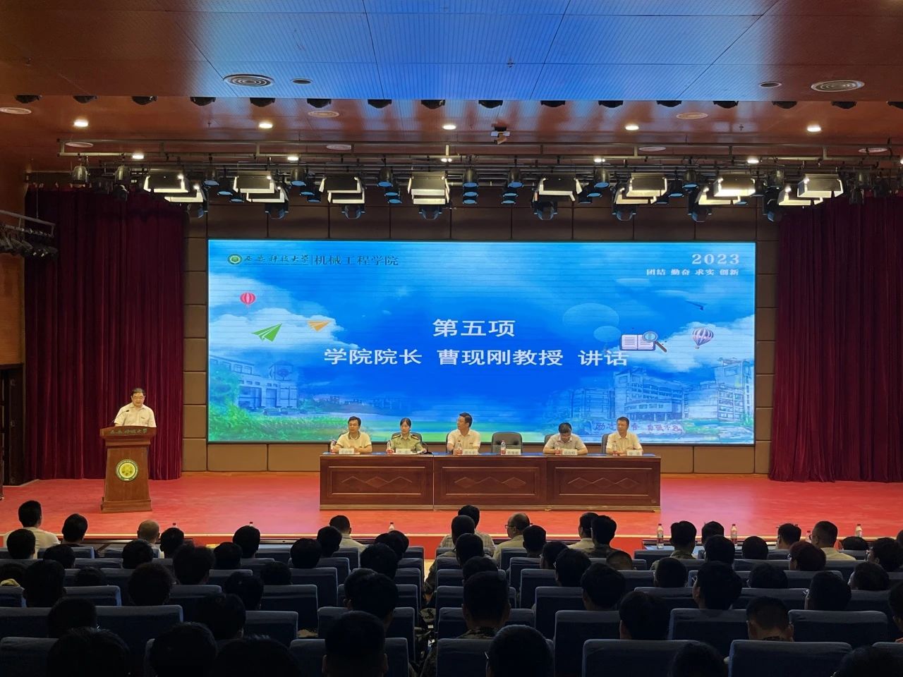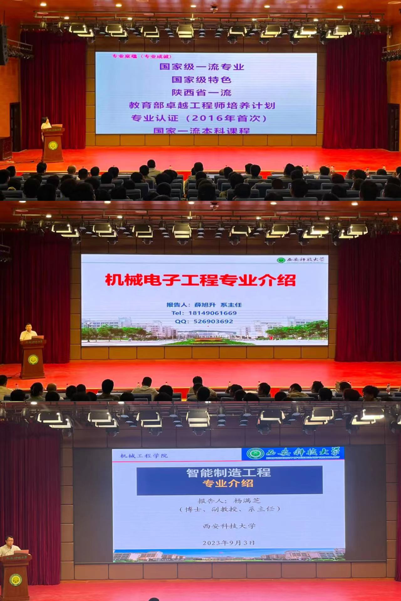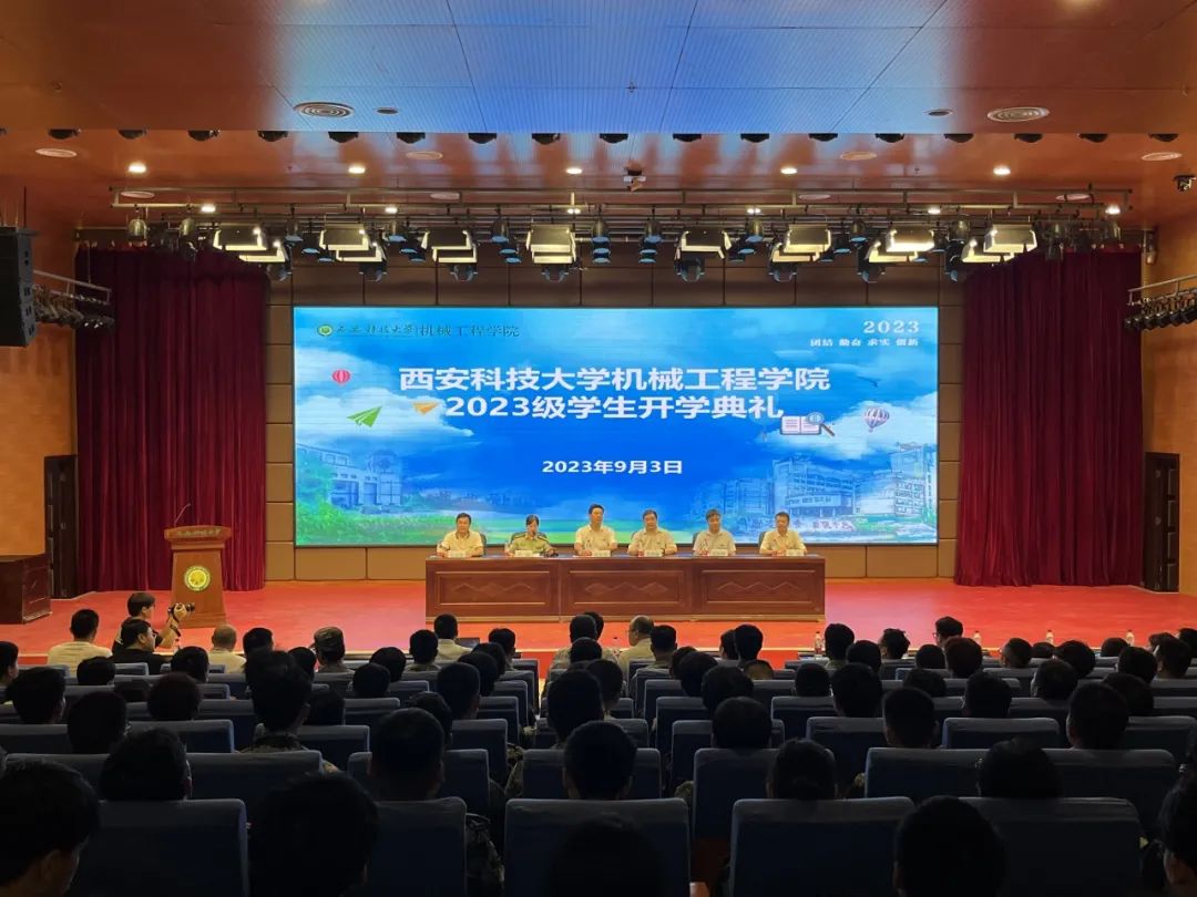 9月3日晚,机械工程学院2023级本科生开学典礼暨专业介绍会在临潼校区骊山校园煤炭科技中心一楼报告厅举行。学院领导班子成员,系主任、教工党支部书记,学工办、实验中心、创新创业办公室主任,全体辅导员、新生班主任以及2023级全体新生参加了典礼。学院副书记尹弘主持典礼。