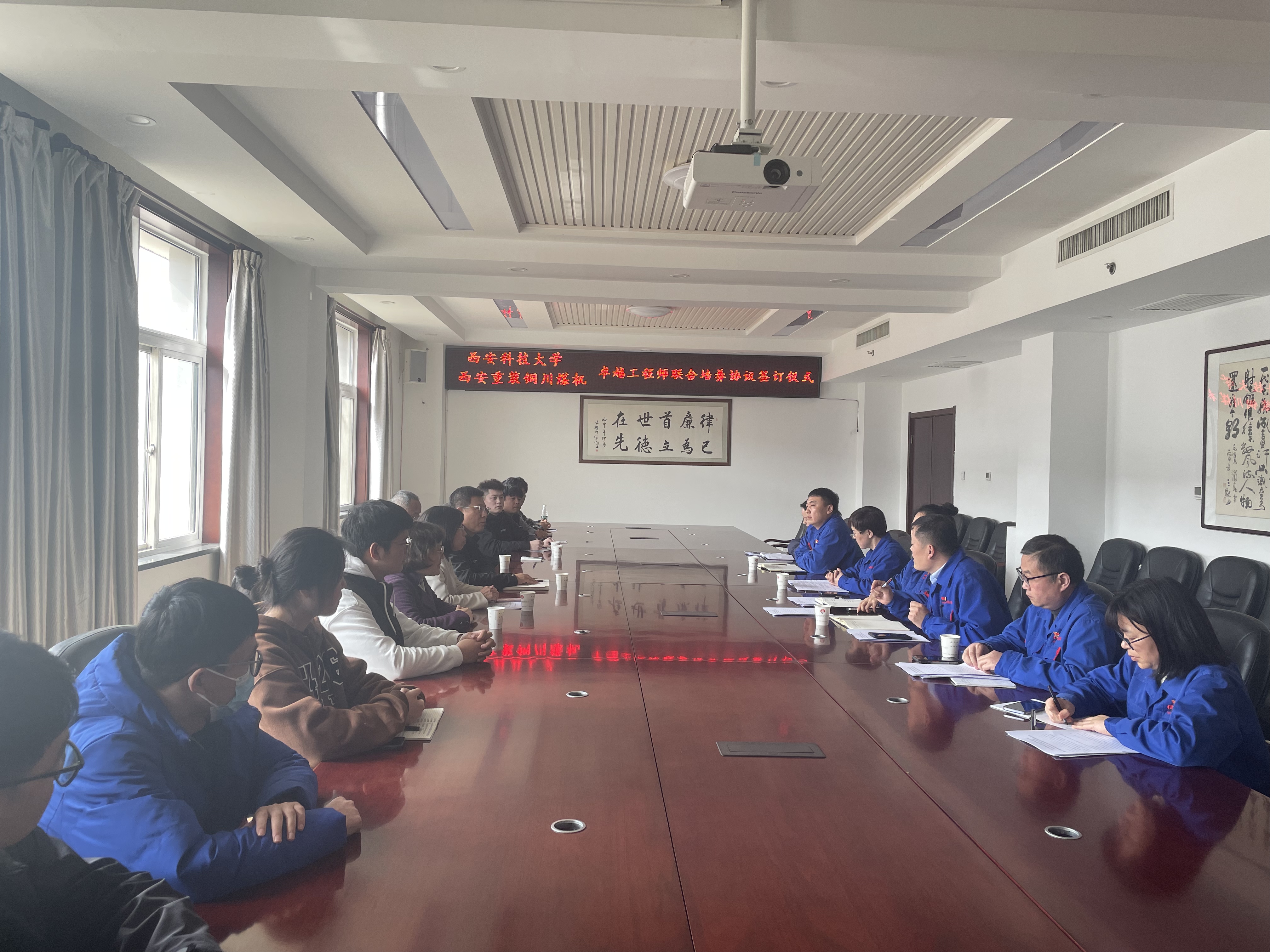 西安重装铜川煤矿机械有限公司董事长宋晓军对郭小平书记一行表示热烈欢迎。公司副总经理陈克华主持导师见面会,双方就校企联合培养合作方向和发展前景进行了交流探讨,现场签署协议并就毕业设计进行了具体安排。郭小平表示,校企共建“机械设计制造及其自动化卓越工程师联合培养实践基地”,旨在发展新质生产力,创新人才培养机制,提高人才培养质量,激发员工创新活力,进一步培养老员工吃苦耐劳精神、实践动手能力和创新精神。希望同学们珍惜宝贵的学习机会,严格遵守企业各项管理规定,服从组织管理,高度重视安全生产,认真学习专业技能,高质量完成毕业设计。
