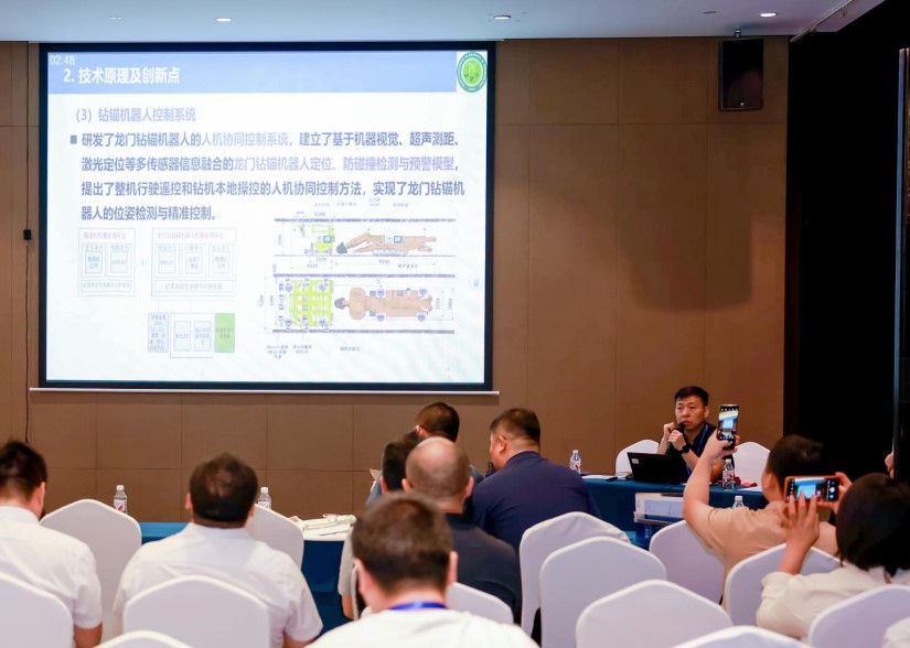 曹现刚教授主持大会报告。大会以“智能新时代,共筑新未来”为主题, 90余场精彩报告围绕人工智能与机器人关键技术领域中的最新学术进展和热点问题进行深入探讨。会上,薛旭升副教授、王川伟博士及博士研究生吴旭东分别作了题为“煤矿智能钻锚机器人关键技术研发及应用”“煤矿巷道掘进临时支护机器人关键技术及应用”“煤矸分拣机器人关键技术研究进展”的分论坛报告,重点介绍了公司机器人学科的特色创新成果。公司学术报告受到与会学者的认可与好评。