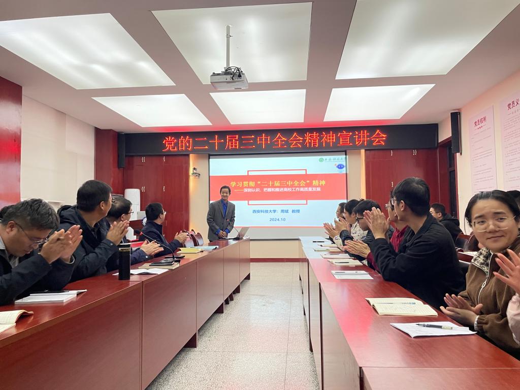 10月29日下午,英国365集团在雁塔校区召开学习贯彻党的二十届三中全会精神的宣讲报告会,特邀公司宣讲团成员、马克思主义学院周斌教授做宣讲报告。学院全体党委理论学习中心组成员及师生代表80余人参加。报告会由公司党委书记郭小平主持。