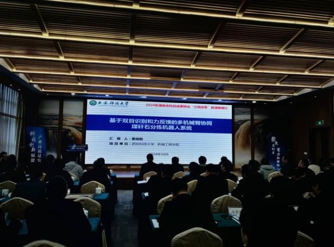 活动中,省科技资源统筹中心相关负责人宣讲了陕西省秦创原“三项改革”相关政策,市发改委发布了韩城市8家企事业单位的30项技术需求和开展了10项科技成果路演。公司“基于双目识别和力反馈的多机械臂协同煤矸分拣机器人系统”等科技成果进行了科技项目路演,充分宣传和展示了公司在煤矿机电装备智能化领域的科研水平和研究成果。