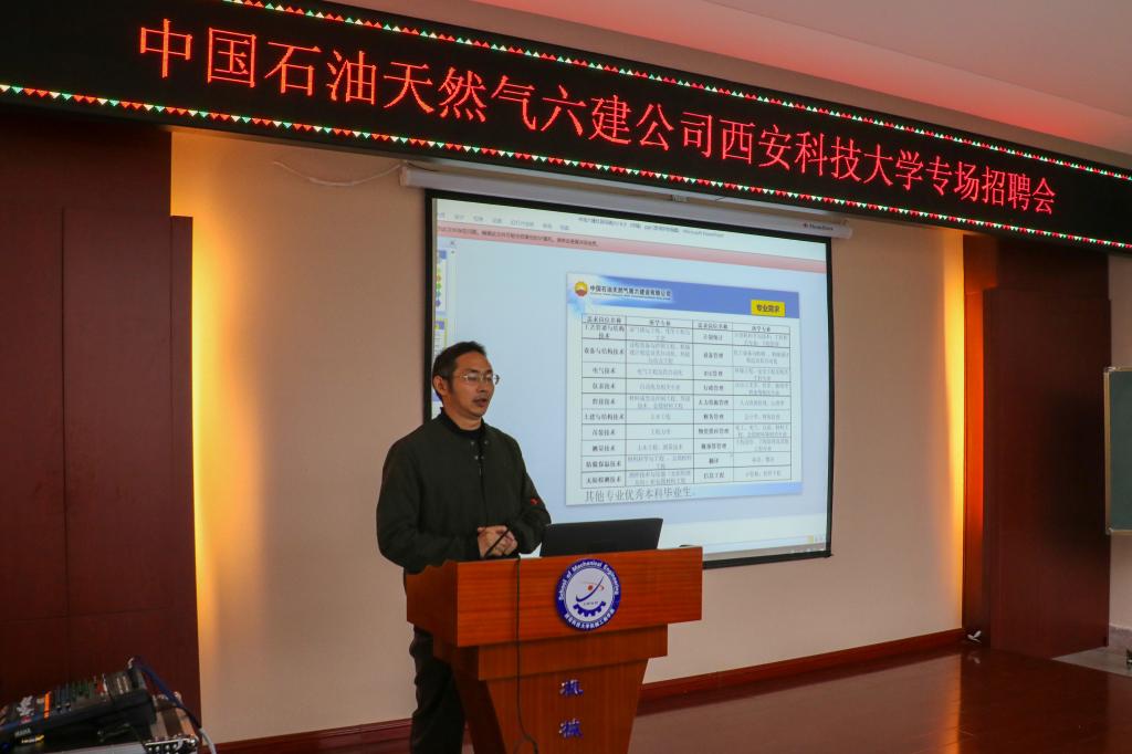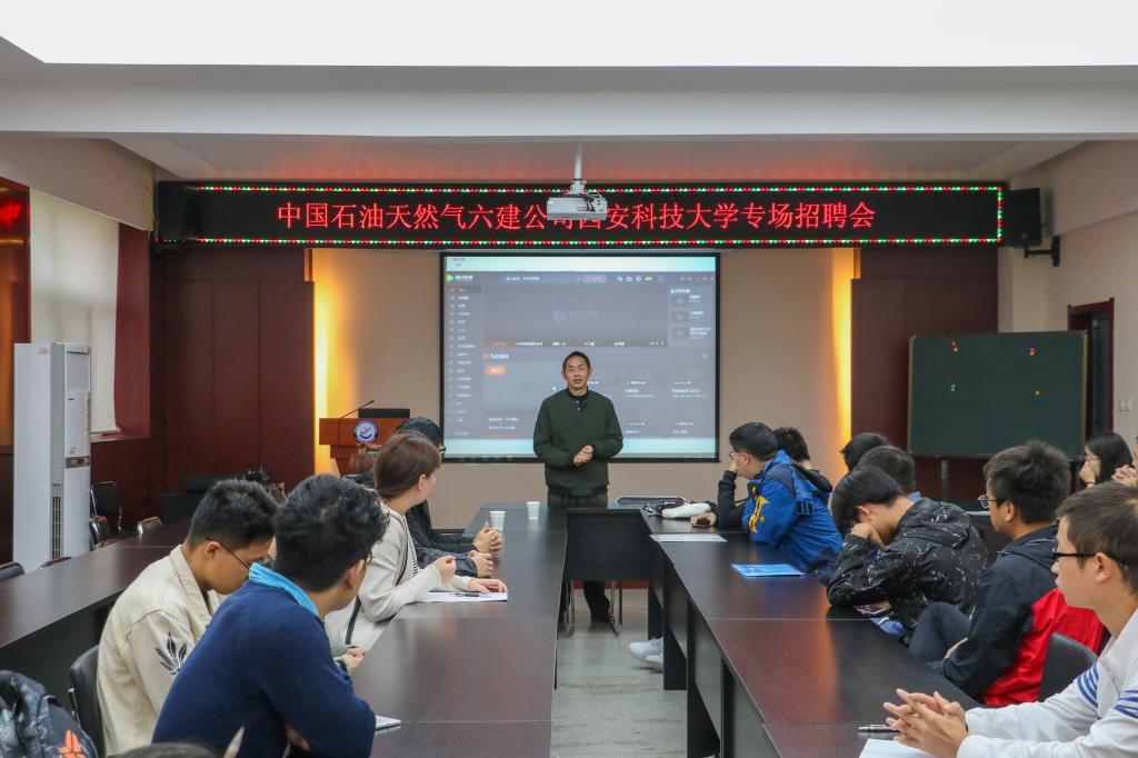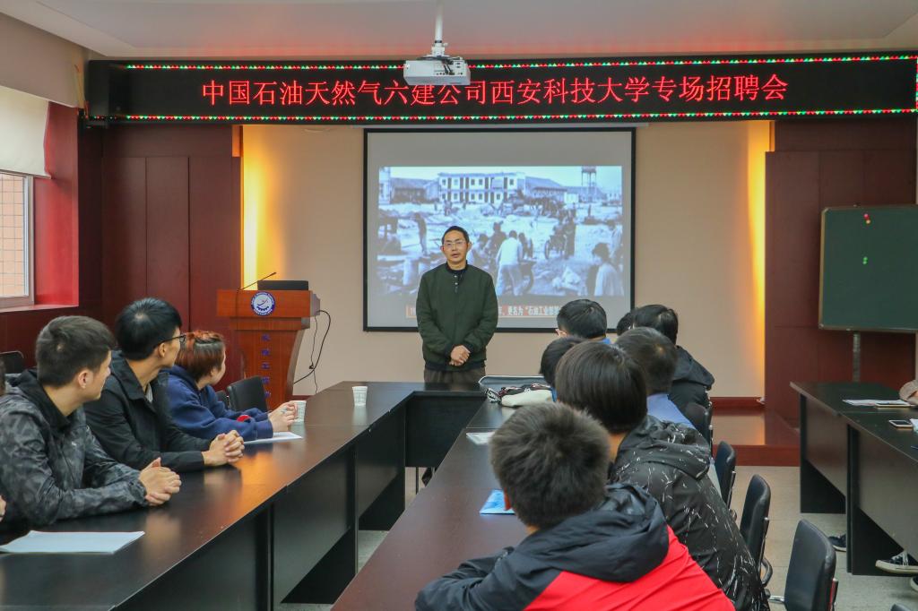 此次招聘会得到公司领导们的大力支持,在招聘会上,主讲人先与同学们一同观看了公司成立50周年的宣传片,并介绍了中油六建的基本概况,分布范围,发展历程,技术优势等基本情况。同时,同学们积极参与问答互动,现场气氛热烈,员工表现积极,踊跃的提出并回答问题。