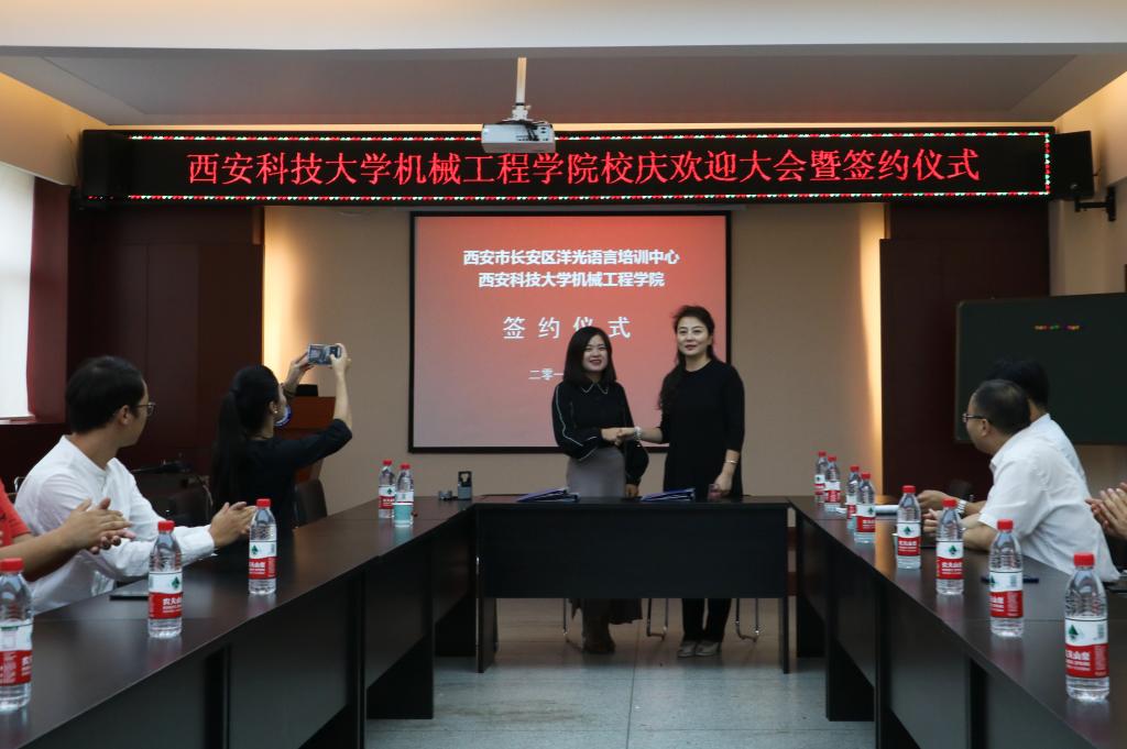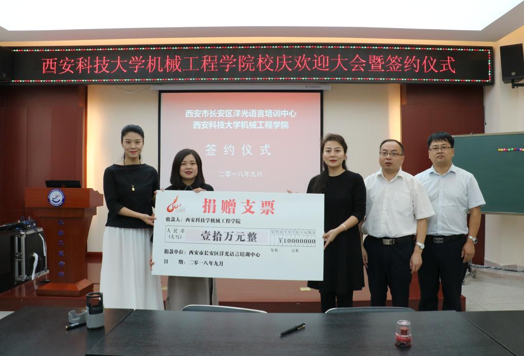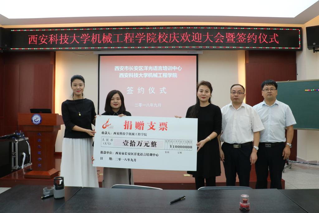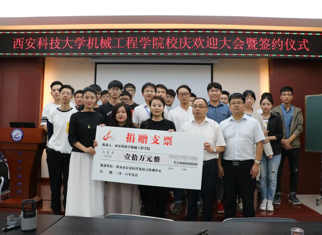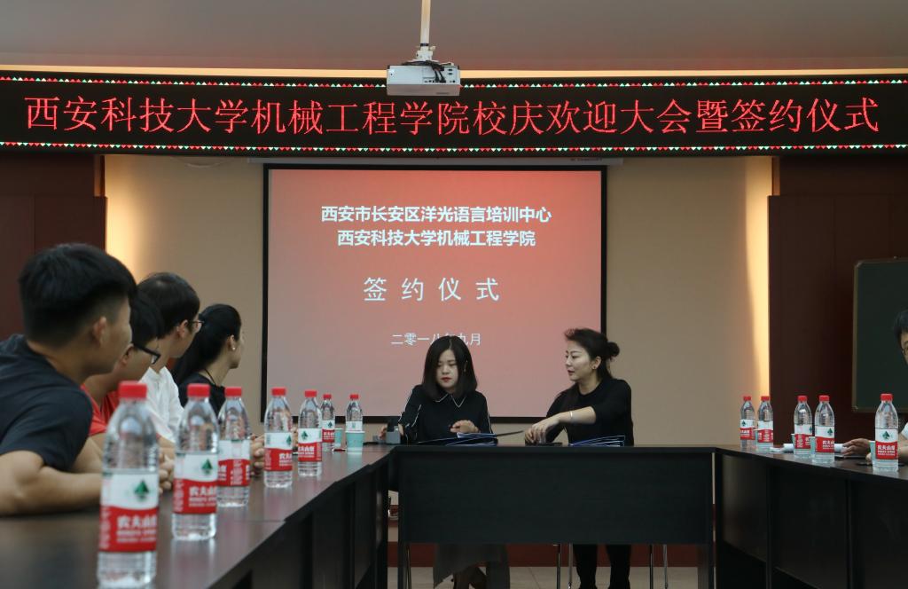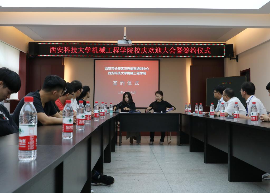 2018年9月14日上午,洋光外语外语培训机构一行人赴英国365集团签署阳光外语—英国365集团企业捐赠协议,签约仪式在临潼校区英国365集团会议室进行,仪式前双方就人才培养、外语教学等议题进行了友好深入的交流,并由洋光外语培训机构与英国365集团分别代表两家单位签署了捐赠协议。参会的学院领导有委书记汪卫兵、经理张旭辉、党委副书记李婉丽、副经理寇发荣,学院30余名师生也参加了签约仪式。