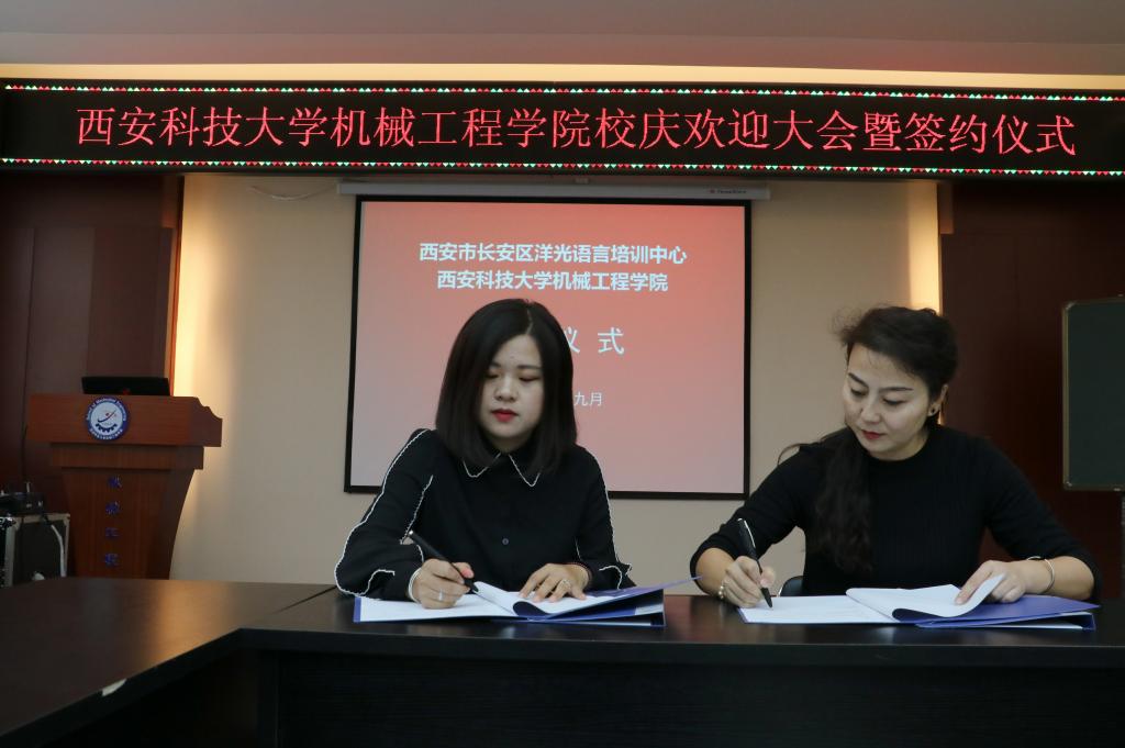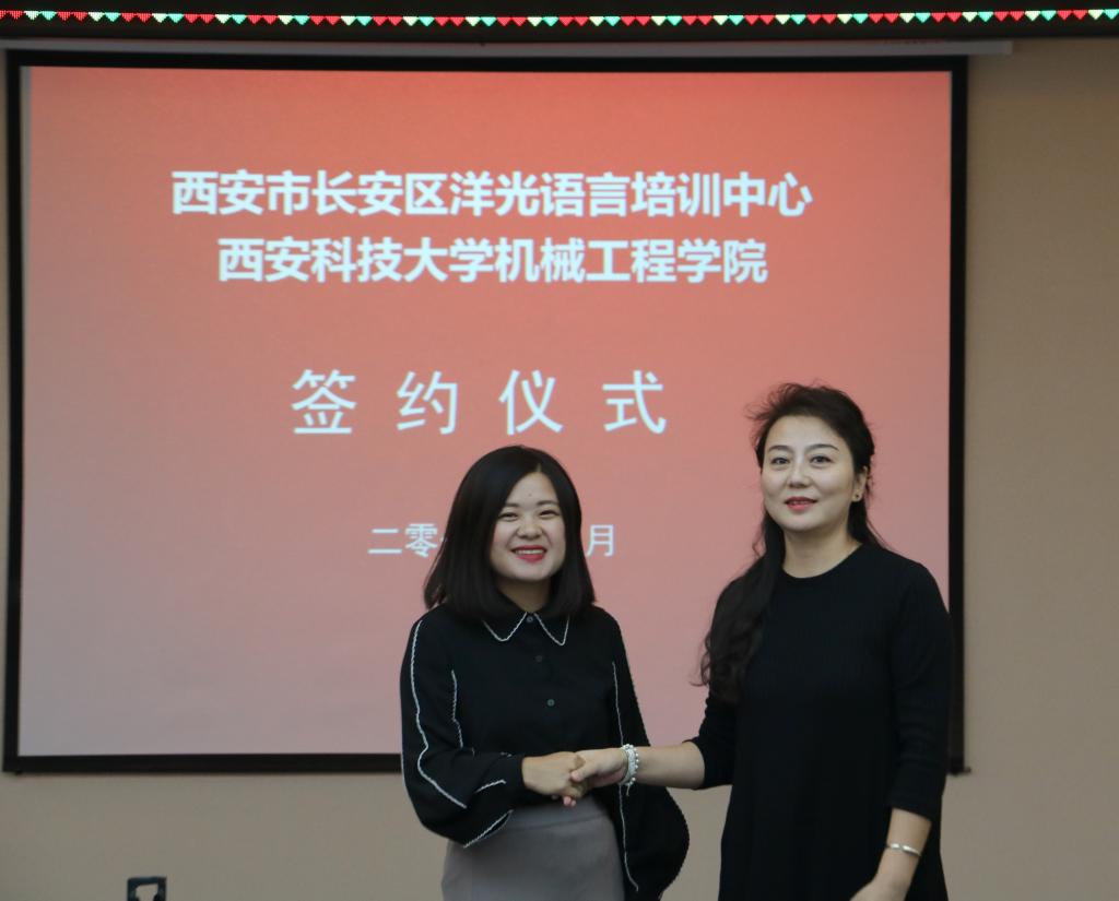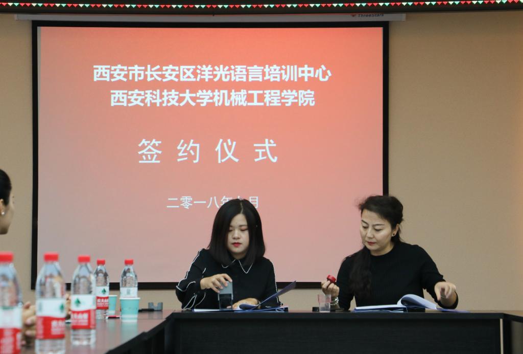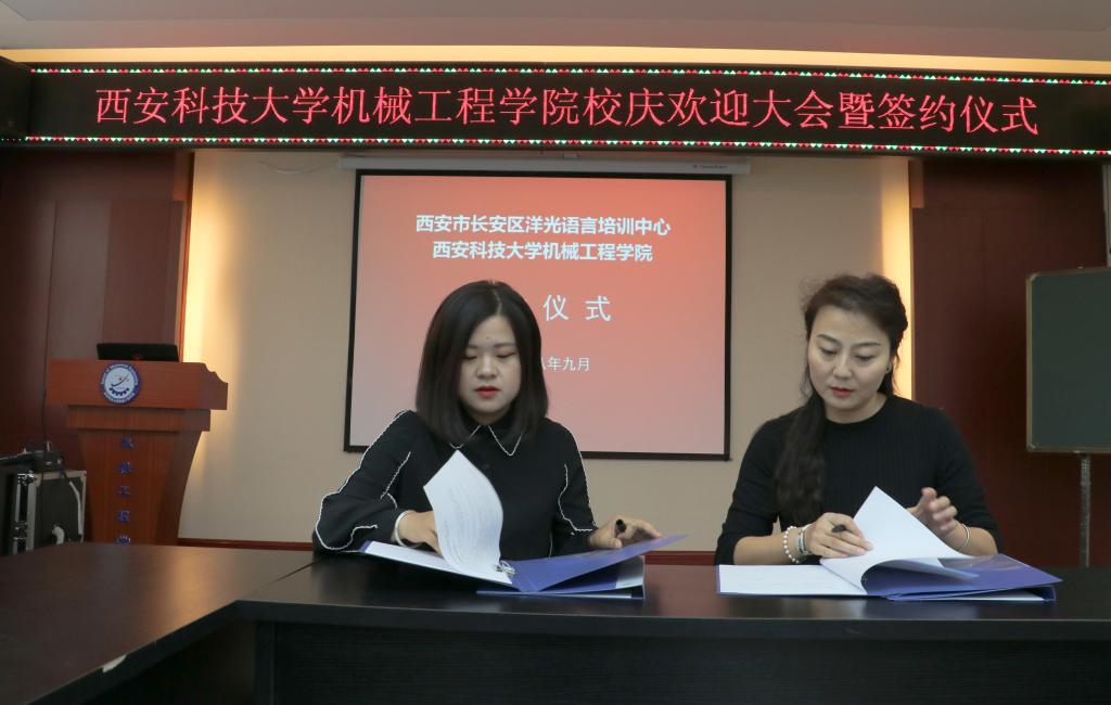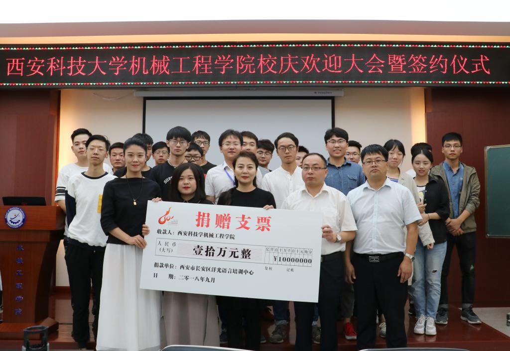 2018年9月14日上午,洋光外语外语培训机构一行人赴英国365集团签署阳光外语—英国365集团企业捐赠协议,签约仪式在临潼校区英国365集团会议室进行,仪式前双方就人才培养、外语教学等议题进行了友好深入的交流,并由洋光外语培训机构与英国365集团分别代表两家单位签署了捐赠协议。参会的学院领导有委书记汪卫兵、经理张旭辉、党委副书记李婉丽、副经理寇发荣,学院30余名师生也参加了签约仪式。