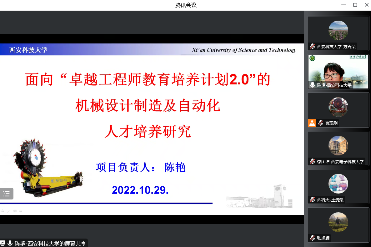 会上,王贵荣副董事长致欢迎词。项目负责人陈艳副教授围绕研究现状与背景分析、研究内容与目标、研究方法与技术路线、具体举措及研究计划五个方面介绍了“面向卓越工程师教育培训计划2.0的机械设计制造及其自动化人才培养模式改革与实践”项目。专家组对该项目推进价值和实施意义给予了高度肯定,并从项目内容、思路、方法和成果等方面进行了点评,结合基于双碳目标从课程体系建设、专业培养方案修订、卓越班及普通班差异性建设以及新形势下校企合作模式探索等方面做了具体指导。专家点评专业严谨,前瞻性、指导性强,为后续项目推进和专业建设提供了极具参考价值的意见和建议。
