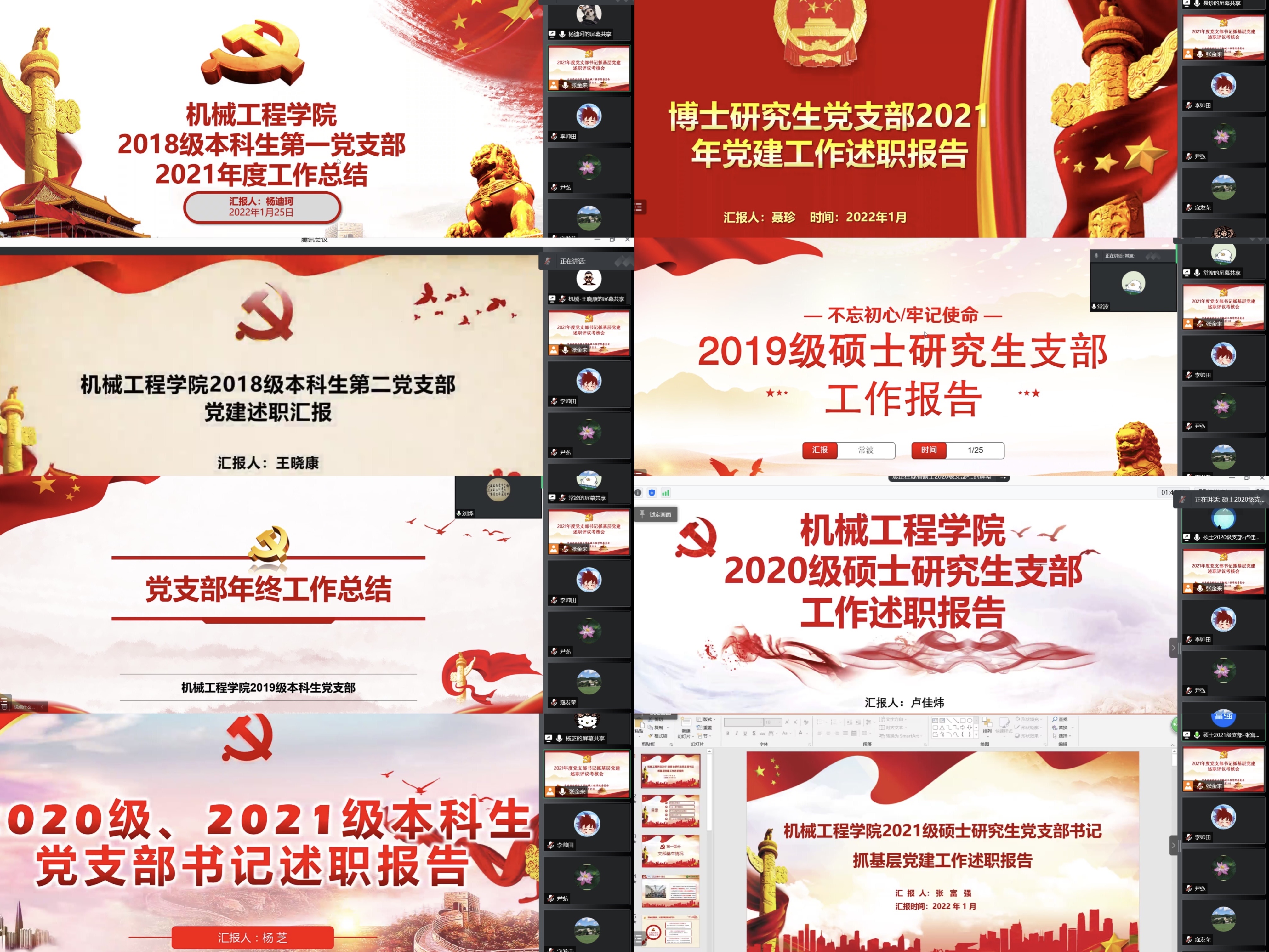 会上,14名教工、员工党支部书记按照公司党委对考核工作的统一部署和要求,聚焦贯彻落实习近平新时代中国特色社会主义思想、关于教育的重要论述、全国教育大会、全国高校思想政治工作会、学校思想政治理论课教师座谈会和第27次全国高公司党建工作会议精神,以及《2021年全省教育系统基层党建重点任务》,紧扣基层党建重点任务,分别对2021年政治理论学习、落实基层党建工作重点任务,重点围绕严肃党内政治生活,强化政治功能,支部党史学习教育开展情况;推进习近平新时代中国特色社会主义思想“三进”,落实立德树人根本任务,以实际行动做到“两个维护”情况;推动“三会一课”和谈心谈话、主题党日等制度落实,推进党建工作和立德树人教书育人工作深度融合;“样板支部”培育和创建工作、疫情防控等任务中发挥党组织战斗堡垒作用和党员先锋模范作用情况、规范党员发展和教育管理等方面以及存在的主要问题、下一步努力方向等方面进行了线上述职。各支部联系院领导结合实际工作分别对各支部工作进行了点评。