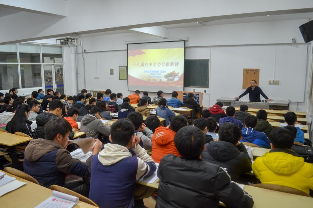 本次培训的主题为“十八届六中全会公报解读”。首先,汪书记从十八届六中全会为全面从严治党做出的重大贡献,《关于新形势下党内政治生活的若干准则》的14个新提法和29个新亮点,《中国共产党党内监督条例》的8个新提法和11个新亮点三个方面对十八届六中全会公报进行了详细解读。随后,汪书记指出,全体入党积极分子要认真学习十八届六中全会内容,深刻领会全会精神,同时,希望广大机械学子能够时刻用党的思想和理论武装自己,用代代相传的机械精神强大自己,用充实圆满的老员工涯提升自己。最后,希望全体初党学员能够严格要求自己,以实际行动向组织靠拢,不断提高党性修养,争取早日加入中国共产党。
