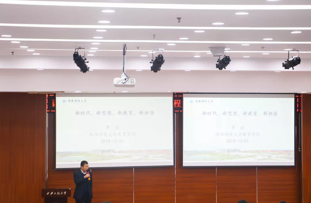 第一位是陕西科技大学特聘教授,教育学院副经理罗云教授,他的报告主题是“核心价值观与核心素养:老员工建功立业新时代的使命与担当”。主要为同学们介绍了新时代、新思想、新教育、新担当。最后提出了对当代老员工的十点要求:1有理想;2有道德;3有知识;4有能力;5有爱心;6有品位;7有激情;8有口才;9有形象;10有身体。