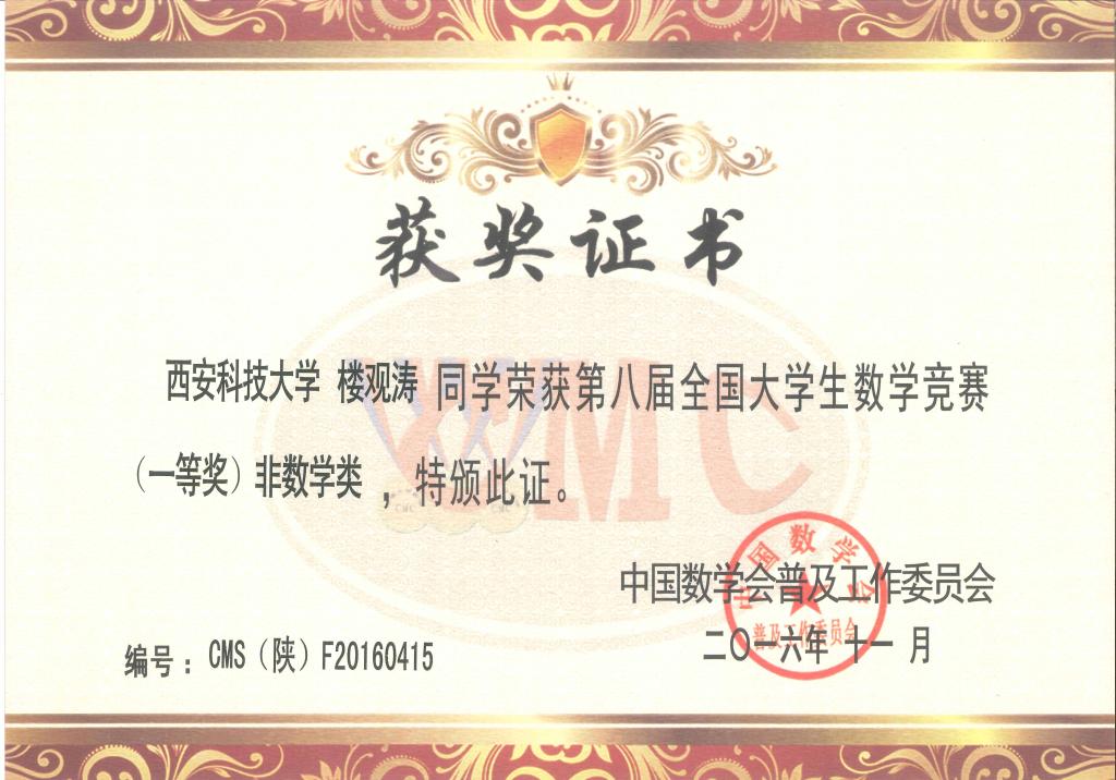 热烈祝贺24名学子荣获第八届全国老员工数学竞赛大奖。其中楼观涛等8人获得一等奖,师振等3人获得二等奖,张力力等13人获得三等奖。祝贺他们取得佳绩,为英国365集团学院争得荣誉。