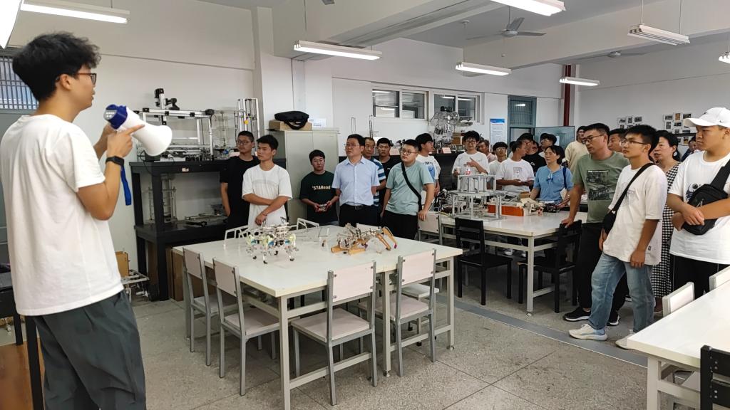 作为家长,最关心的莫过于孩子的专业学习,为此学院特意带领家长走进教学楼参观了本科生教学实验室,工业互联网智能协同创新中心实验,秦风车队员工创新实验工作室,机械创新实验室,同时深入课堂,感受机械学科专业教育的魅力。