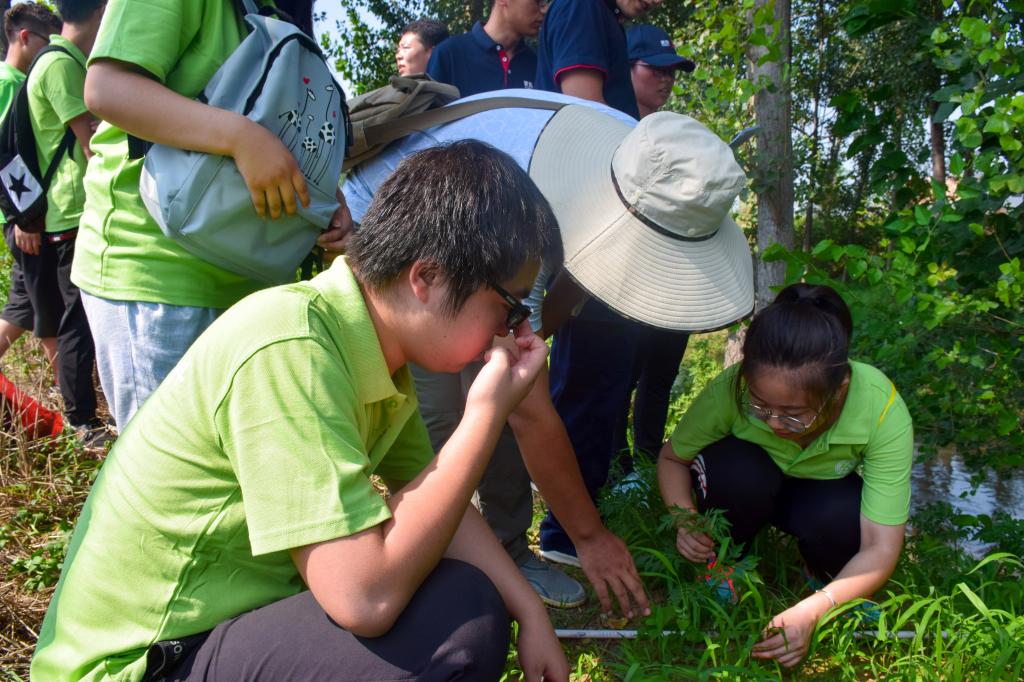 志愿者们通过样方法在河道旁选取若干个样方,通过计数每个样方内不同植物的个体数,求得每个样方的种群密度,估算植株密度。对于自己不能识别的植物种类,队员们着手开始采集植物标本带去请专家确认,小心翼翼地剖土、抖土,防止标本的任何一段根系出现断裂,做标牌装袋这些细节队员们五部精益求精的完成。