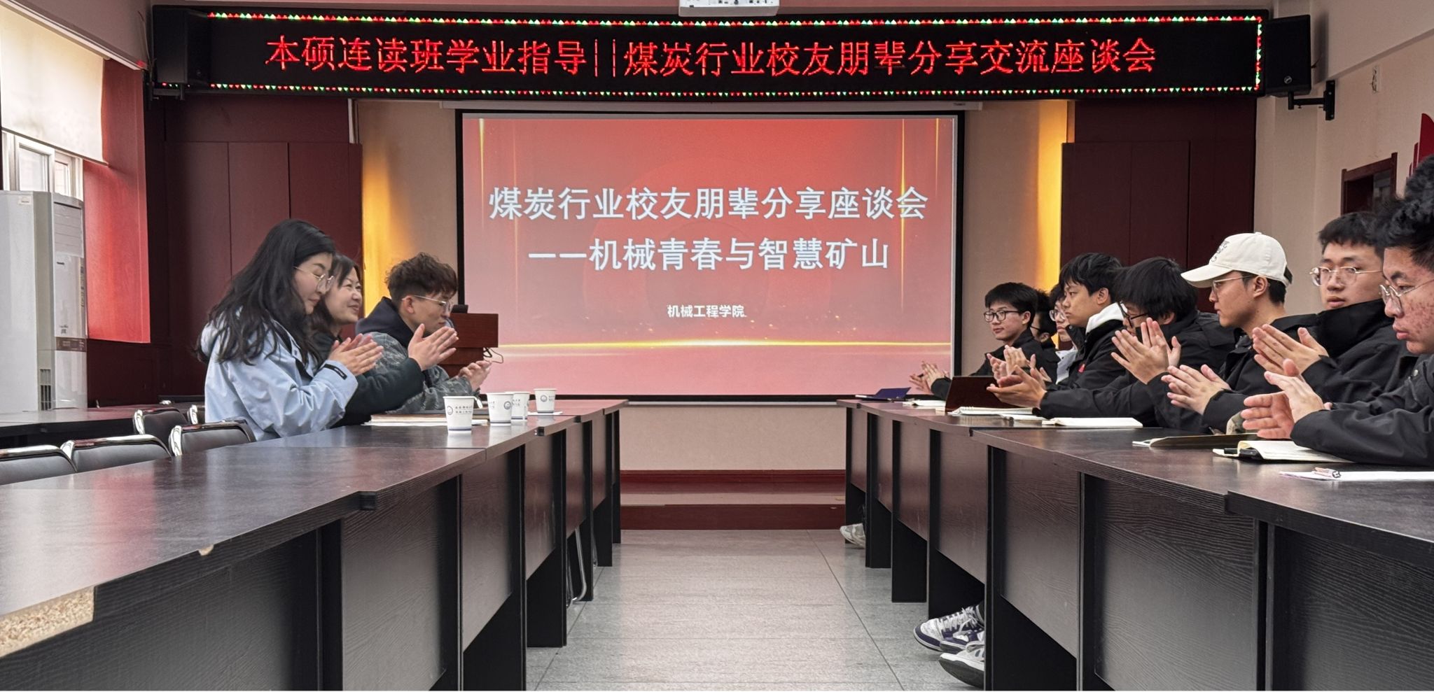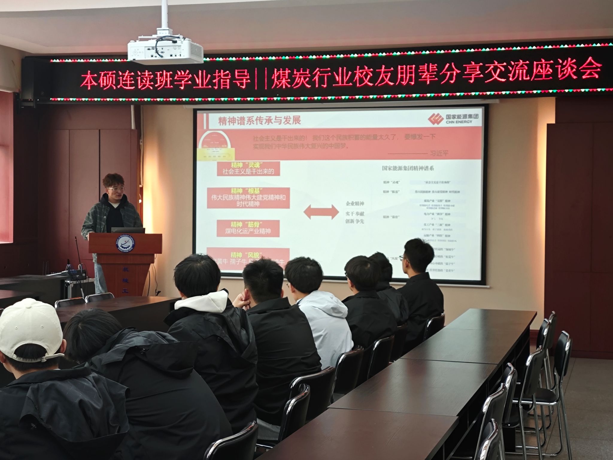 张威泽现就职于国能神东煤炭集团有限责任公司大柳塔煤矿。座谈会上,张威泽向同学们介绍了国能神东煤炭集团有限责任公司大柳塔煤矿的发展建设、企业文化、煤矿生产系统、煤矿智能化建设情况,帮助同学们进一步了解煤炭智能化发展;重点围绕实干、奉献、创新、争先的企业精神对自身职业发展的积极影响;同时结合个人员工时代的学习规划、学习经历、科创竞赛实践经历以及入职后的工作体会,强调了《大学物理》《电工电子技术》等专业学习、具备扎实的制图能力以及软硬件操作技能对于提升机械学科员工职业素质能力提升的重要意义,他勉励学弟学妹坚定成才自信,积极创新,刻苦学习、在本科期间夯实专业基础,积极参加学科科技竞赛,练就真才实学,立志为行业发展、强国建设贡献青春力量。